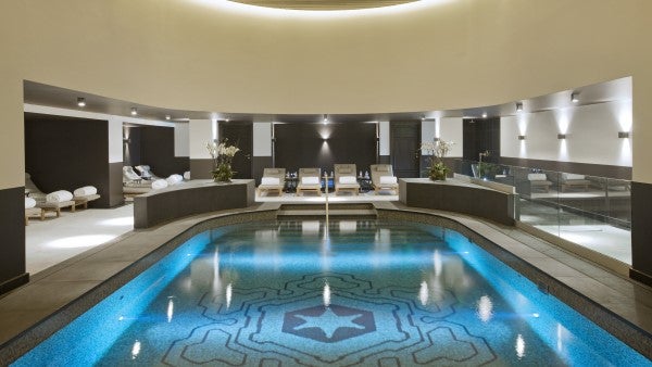The subterranean spa’s five treatment rooms include a dedicated thermotherapy room with a steam sauna and ice bath. Unwind in the mosaiced indoor pool before choosing from an extensive menu of treatments, many of which use products by luxury skincare brands Bamford and La Prairie. Pampering facilities include a whirlpool, hammam, sauna and salt cave, as well as a state-of-the-art fitness centre and a hair and beauty salon. Yoga and meditation sessions are also available.
