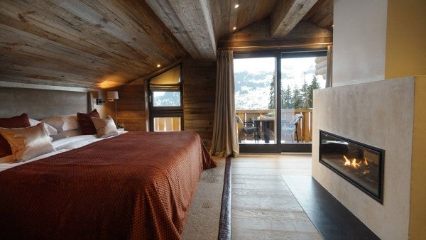 Taking up the entire top floor of the chalet, the two stunning master suites are elegantly styled with wooden beams, centrepiece fireplaces and large private balconies commanding awe-inspiring mountain views. Sleek marble bathrooms come with huge soaking tubs and rain showers, while fully-stocked minibars and underfloor heating add to the cosy ambience.