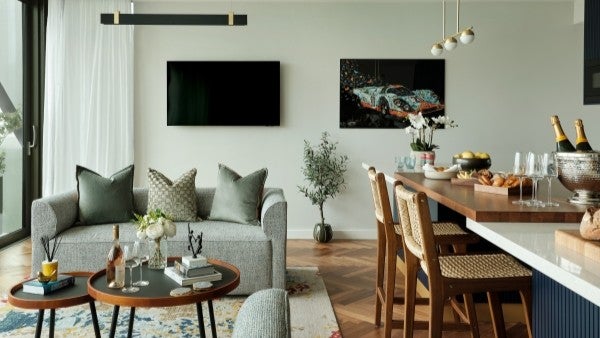 Each one is a masterpiece of modern design, featuring cantilevered terraces, floor-to-ceiling glazing, and interiors by Michaelis Boyd that blend plush furnishings with motorsport-inspired aesthetics. Features such as underfloor heating, comfort cooling, and high-acoustic specifications ensure a sophisticated private sanctuary, while intelligent, sound-insulated movable walls allow the flexibility for residences to be sub–divided according to guests’ needs.